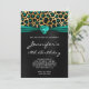 Convites Preto Dourado Teal Verde Folha-Leopardo 18º Aniver