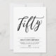 Comemore seu dia especial com este simples e mínimo 50º convite de aniversário. Este design apresenta um script de na moda com letra "Cinquenta" com uma combinação de cores preto e branco. Mais convites para aniversários adultos e material de festa estão disponíveis no meu compro BaraBomDesign.