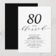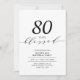 Celebre seu dia especial com este convite de festa de aniversário moderno. Este design apresenta um elegante "80 anos abençoados" com um layout limpo em uma combinação de cores preto e branco. Você pode personalizar o texto para qualquer evento ou idade (40, 50, 60, 80, 90, etc). Mais designs e suprimentos para festas estão disponíveis na minha loja BaraBomDesign.