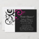 Convidado de casamento preto moderno e impressionante, moderno e contemporâneo, com sotaques brancos e magenta, com delicado fundo de folha de rolagem. Personalize online com seus detalhes de casamento.