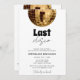 Este convite de final de semana preto e branco com Dourado último disco Bachelorette exumenta um minimalismo surpreendente que é fácil. O contraste clássico entre preto e branco define o palco para uma estética de eterno, enquanto a presença brilhante de uma bola de disco de ouro no topo infunde o design com um toque de glamour e entusiasmo. A combinação desses elementos cria um convite sofisticado e lúdico, captando perfeitamente a essência de uma memorável celebração de solteiros, infundada no espírito da discoteca.