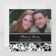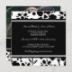 Convites feitos sob encomenda da foto da festa de noivado em preto e branco elegante com design floral à moda. Inteiramente customizável com seus detalhes da festa de noivado e sua própria fotografia. Também disponível em uma vasta gama de combinar produtos do casamento, contacte-nos com a relação da mensagem da emissão para a personalização extra ou para cores diferentes ou produtos.