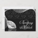 Convites preto e branco do casamento de diamante de Bling-- combine os cartões de RSVP e a série completa do casamento abaixo. Cada convite é preto com uma folha de prova do candelabro de pedra preciosa e um design do laço. A parte dianteira igualmente caracteriza uma grande pedra do diamante com uma reflexão para a elegância adicionada. A parte traseira caracteriza o mesmo design do candelabro com uma caixa de texto branca sobre a parte superior. Estes convites do casamento de diamante são ajustados ao estoque básico de alta qualidade do cartão; contudo, você pode mudar o estoque ao linho, feltro (gravado), reciclado, e diversas máscaras metálicas se você gostaria sob o número 2 (escolhem seus estilo, tamanho & tipo de papel) abaixo da laranja adicionam ao botão do carro. Uma lista dos custos adicionais para um estoque mais extravagante do cartão é indicada igualmente sob essa opção. Cada convite vem com um envelope branco cabido.