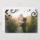 Casamento festivo e fantástico de espiral branca e negra salva os convites para datas. Inundações decorativas com folhas e rosas, e lindas fontes com ligaduras roxas. Casamento simples, moderno e clássico e limpo, salve os cartões de data, com sua foto personalizada na parte de trás do cartão.