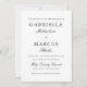 Simples e elegante convite de casamento preto e branco com tipografia clássica.