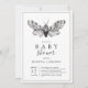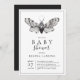 Mínimo convite para chá de fraldas de borboletas preto e branco. Livros para pedido de bebê.