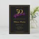 Celebrar o estilo 50! Adicione um toque de chic aos seus convites de 50 anos com estes cartões com tipografia e sotaques dourados, assim como um roteiro rosa-quente na moda num fundo preto. Personalize-o facilmente com o seu nome, localização da festa e detalhes de RSVP. Apresenta também um padrão de deco inspirado em arte de saltos em ouro no outro lado da placa.