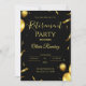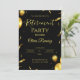 Convite de festa de aposentadoria preto e dourado elegante com um design sofisticado e texto totalmente editável. Personalize facilmente todos os detalhes para criar a celebração perfeita de despedida.