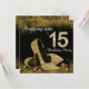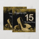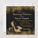 Belo preto e ouro entrando em 15 convites de aniversário com calçados elegantes de alto salto em ouro. Você pode personalizar facilmente este elegante convite de aniversário preto e dourado entrando em 15 para o seu evento simplesmente adicionando seus detalhes no estilo de fonte e na cor e no texto de sua escolha. Você também pode alterar a cor de fundo.