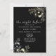 Elegante, rústico, botânico, vintage boho chic black The Night Antes do Ensaio Jantar convite com prata dourada e renda floral dourada e roteiro de caligrafia moderno.