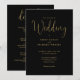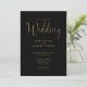 Este convite de casamento de guião preto e dourado elegante pode ser personalizado com todas as suas informações especiais sobre o dia do casamento no verso, incluindo o seu RSVP, alojamento e detalhes adicionais. Projetado por Thisnotme©