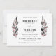 Um simples convite de casamento moderno, com galhos de flores pintados suavemente em preto-d'água e rosa-pincelado enfeitando seus nomes em ambos os lados, com os detalhes exibidos abaixo em fontes formais sobre um fundo branco limpo. A parte traseira é projetada com uma cor rosa esbranquiçada sólida. Este design faz parte de uma coleção, visite nossa loja para outros itens correspondentes. Para obter ajuda ou solicitação personalizada, entre em contato conosco em citronelladesign@gmail.com