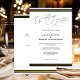 Preto Elegante com Dourado Convite de Casamento desenhado com preto clássico em branco com sotaques dourados elegantes. O texto da frente inclui: Convite para Casamento; Nomes da Noiva e da Noite, Data de Casamento, Localização e Detalhes de Recepção. O texto inverso inclui: seus detalhes de RSVP em um fundo branco com sotaques elegantes em preto e ouro. Para personalizar, basta inserir seus detalhes em nosso modelo fácil, substituindo o texto de exemplo. Não se esqueça de ver toda a Elegante Black With Dourado Wedding Collection para obter cartões e acessórios.