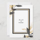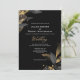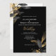 Elegante Preto com Convite Dourado para Casamento desenhado com texto branco e dourado sobre fundo preto, aparado com folhas pretas e douradas. O texto inicial inclui: Nomes de noiva e noiva, Data e Hora de Casamento, Local e Recepção a Seguir. O texto inverso inclui: os primeiros nomes do noivo e do noivo, junto com quadros e folhas pretos e dourados. Para personalizar, basta inserir seus detalhes no nosso modelo, substituindo o texto de exemplo. Não se esqueça de ver toda a Elegante Black With Dourado Wedding Collection para correspondência com artigos de papelaria e acessórios.