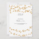 Preto e Branco romântico e elegante com convite para casamento de folhas Douradas, desenhado com folhas de cor amarelo macio e texto branco sobre fundo preto. O texto inclui: Juntamente com suas famílias, os nomes dos Cheios da noiva e do noivo, a data e hora do casamento, a localização e recepção a serem seguidas. O texto do lado inverso inclui: Os detalhes do RSVP sobre um fundo branco com sotaques de folha dourada e texto preto. Para personalizar, basta inserir seus detalhes em nosso modelo fácil, substituindo o texto de exemplo.
