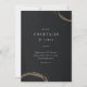 Um elegante design de convite para a Hora Feliz de Stacey Meacham, com um fundo textural preto e anéis de cocktail de ouro. Perfeito para negócios ou eventos pessoais.