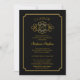 Um elegante rolo de faixa e um tom de ouro de quadro redimensionado e design de convite de festa de formatura preta que pode ser personalizado para graduações de segundo grau, faculdade, universidade ou escola profissional. Design por Holiday Hearts Design (todos os direitos reservados).