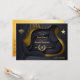 Convite moderno e sofisticado para festa de formatura online virtual com um tema preto e ouro personalizável para as suas especificações.