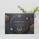 Convite virtual de festa de formatura online elegante com um tema preto e ouro personalizável para suas especificações.