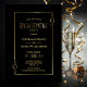 Convide seus amigos e entes queridos para sua festa de noivado com este convite à festa de noivado negra, enquadrada em ouro moderno.