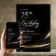 Convites Preto moderno e Dourada 75ª Festa de aniversário