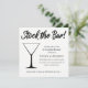 Você está celebrando o futuro Sr. & Sra. planejando um chá de casais para ajudá-los a fazer o estoque do bar? Esse convite sofisticado, mas casual, pode ser o seu! Ele apresenta uma fonte moderna, ousada, escrita à mão, usada para criar uma camada gráfica de tipografia que diz "Stock the Bar!" Este gráfico, e um contorno gráfico de vidro martini ao lado dele, são pretos sobre um fundo branco editável. Todo o tipo editável é renderizado em uma fonte serif divertida e agradável; você pode usar uma fonte diferente se desejar. Todas as camadas estão separadas e desbloqueadas para que você possa fazer as alterações desejadas. Basta usar os campos modelo para adicionar seus detalhes pessoais e clicar nos links fornecidos para personalizar ainda mais. A parte de trás está coberta por um fundo preto editável com um contorno de vidro martini branco e outro gráfico "Stock the Bar!" ao lado. Essas camadas também foram deixadas destravadas para que você possa reposicionar ou remover qualquer peça que desejar mudar. // 89 // Design de Melody Watson para Paper Muserie.