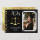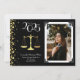 Celebre o novo formando de doutorado juris da faculdade de direito com este anúncio de graduação em ouro e advogado negro! Elegante com uma borda de fotos vintage e sotaques de confete dourados! Perfeito para qualquer estudante de Direito!