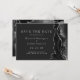 A borda direita deste elegante moderno salve a placa de data apresenta uma coloração d'água preta aparada com falso brilho prateado. O texto personalizável combina as fontes de cinza prateada se e copperplate em um fundo escuro. O verso apresenta um design de agata preto e prateado correspondente.