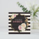 Este chá de panela chic e moderno apresenta um amplo padrão horizontal de faixas em preto e marfim com uma caixa de texto decorativa em forma de colchete preto em preto com duas bordas externas de ouro. Há dois buquês florais coloridos no canto superior esquerdo e inferior direito da área de texto e têm adoráveis rosas em creme, marfim e rosa, com lírios peruanos laranja e folhagem verde. Todos os textos podem ser personalizados, como quiserem, mas não esqueçamos que é preciso ajustado dentro da área da modelo. OBSERVE que o cartão postal RSVP NÃO será ajustado neste convite de tamanho. Envie um e-mail para niteowlstudio@gmail.com se precisar de itens correspondentes ou se precisar de ajuda para personalizar o texto.