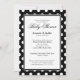 Estes sofisticados e o na moda 2 convites tomados partido do chá de fraldas são projetados com as bolinhas brancas sobre o preto. Escolha seu tipo de papel. O linho seria uma escolha perfeitamente elegante para este design. O texto é customizável e muito descritivo e apropriado.