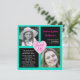 Convites de festas de aniversários quadrados bonito do azul da cerceta, e do doce 16 modernos pretos com as 2 inserções da foto -- Opcional: cancele uma foto para o espaço adicional para o texto da informação do partido. Coração cor-de-rosa feminino brilhante do cristal de rocha do diamante do falso no centro. Tema: Partido da composição e dos termas do doce dezesseis. Personalize o nome e os detalhes, ou o clique personaliza-o para mudar o estilo, o tamanho e a cor de pia batismal. Os enfeites decorativos são parte da imagem -- não são reais. Contacte-nos para personalizar este design outras ocasiões especiais ou celebrações felizes do marco miliário.