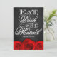 Coma a bebida & seja convites pretos casados do casamento da rosa vermelha do quadro---Felicite seu tema do casamento da rosa vermelha com estes convites que caracterize um quadro preto como um fundo com comem, bebida & seja casado no roteiro elegante com as rosas vermelhas vibrantes na parte inferior da parte dianteira e da parte traseira de cada convite.