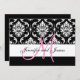 Convites personalizados do casamento tema damasco com nomes da inicial e dos noivos do monograma. Personalize com seus monograma, nomes e cores do casamento. Adicione toda sua informação do casamento na parte de trás do cartão usando alertas fáceis de usar do menu de Zazzle. Damasco lindo e design elegante da inicial do monograma que trabalha para todas as letras do alfabeto. Design da disposição pelo © de Elke Clarke. Gráficos licenciados.