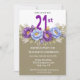 Convites Pretty Blue and Purple Peony 21st Birthday