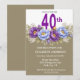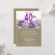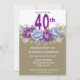 Convites Pretty Blue and Purple Peony 40th Birthday