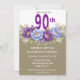 Convites Pretty Blue and Purple Peony 90th Birthday