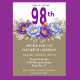 Celebrate a remarkable milestone with this elegant 98th birthday party invitation featuring a stunning floral design in rich purple and soft blue peonies accented with delicate greenery. Perfect for honoring a special woman, this sophisticated invitation blends timeless beauty with a modern touch, making it ideal for a memorable and heartfelt celebration.