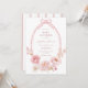 Pretty in pink themed baby shower invitation features a watercolor whimsical pink frame and bow. Personalize with your information or click "Click to customize further" to edit font styles, size and colors.