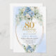 Convites Pretty Light Blue Peonies Gold Frame 80th Birthday