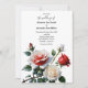 Elegant pretty red and pink white rose on white background floral cottage core wedding Invitation