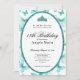 This elegant teal and white 18th birthday invitation has butterflies, a tiara crown, and a teal glitter oval with a personalizable template to create your own message. The invitation template is customizable in the listing editor and is also available as a digital download that's printable after you personalize it. It's a classic style that's perfect for a fun family event to celebrate a milestone birthday.