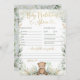 Este elegante jogo de chá de fraldas apresenta um ursinho de pelúcia bonito segurando um balão em forma de coração enquadrado com uma bela camada de água verde