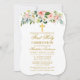 O Elegante Watercolor Floral Branco Cor-de-Água Cor-de-Rosa Primeiro Convite à Santa Comunhão inclui rosas cor-de-rosa, flores brancas e verde. Dourada Cruz. Estilo do suporte.