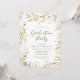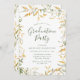 Elegantes convites para festas de formatura florais com detalhes de sua festa de formatura em letras verdes escuras, emoldurados por flores aquáticas em tons de amarelo vibrante e dourado com folhagem verde-escura. Os convites para a graduação floral amarela são perfeitos para formandos segundos graus e universitários.