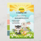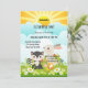Convite de festas de aniversário de criança primavera, bonito e colorido, com animais bonitos e flores de primavera.