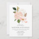 Convites de casamento elegantes, primavera florais, com um buquê de flores cor-de-rosa pinceladas, com folha de ouro falso rosa e folhas verdes. Personalize os convites florais de casamento, adicionando seus nomes e detalhes de casamento abaixo. O convite para o casamento da primavera reverte-se para um sólido fundo cor-de-rosa. Perfeito para casamentos de primavera e verão, casamentos de jardim, etc.