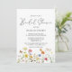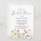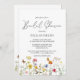 Flores silvestres e borboletas coloridas criam um design botânico rústico para seus convites de chá de panela. Flores amarelas, laranja, rosa e azuis dançam pelo fundo. As fontes serif e cursivas somam a este design maravilhosamente clássico.
