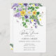 Este é um doce e rústico convite para chás de fraldas de primavera. O design apresenta uma variedade de flores murais primavera, incluindo os daffodils amarelos, as pincéis roxas, os trevos, as lavandas, os adoçantes, os dandelões, as tulipas e o verde-férn e ivy. Inclui também alguns pássaros-joelhos e uma libélula doce mais espaço no verso para mensagens adicionais ou um poema. Seria perfeito para um primavera casual ou evento de verão. Consulte a coleção de cheios de itens coordenadores aqui: https://www.zazzle.com/collections/rustic_daffodils_and_spring_wildflowers_collection-119538053422552785?rf=238422957014002417
