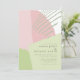 Bloqueio de cor abstrato em uma paleta colorida de cor rosa cor rosa e primavera verde fornece um fundo impressionante para as peças desta suíte de casamento contemporânea. O convite de casamento aqui mostrado é perfeito para a noiva que planeja um casamento na primavera moderna. Adicione facilmente todos os detalhes do evento usando o modelo fornecido. Procure ID740 para ver outras opções de cores e produtos adicionais com este design.