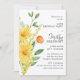 Flores amarelas legantes aninhadas em folhas verdes de sábio criam um convite de 80 moderno e chic. Uma flor silvestre vermelha solteiro adiciona um pop de cor à atenção do desenhar ao nome do convidado de honra - que é escrito em uma combinação de fontes de tendência.